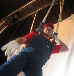 ITP学生Daniel Albritton, Huang-ling Chen和Noah Shibley 跟任天堂开心乐园(Nintendo Amusement Park )项目的目标是建造符合真人大小的超级马利游戏场景,使人们可以在真实的空间跳跃。乐园会使用机器给与玩家超能力,一些他们在3D场景里穿越巨型障碍必备的本领。